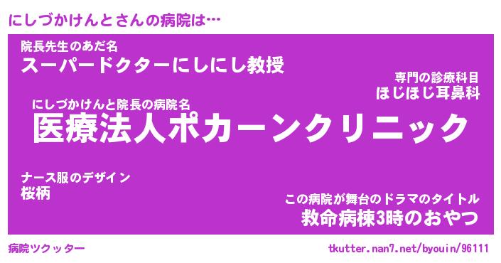 | ポケモン風あだ名 | 『ニシチュウ』『ニシヅダネ』 |