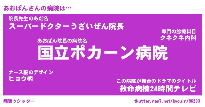 | 欧米人風あだ名 | 『マイケルあおぱん』『ウサインあおぱん』 |