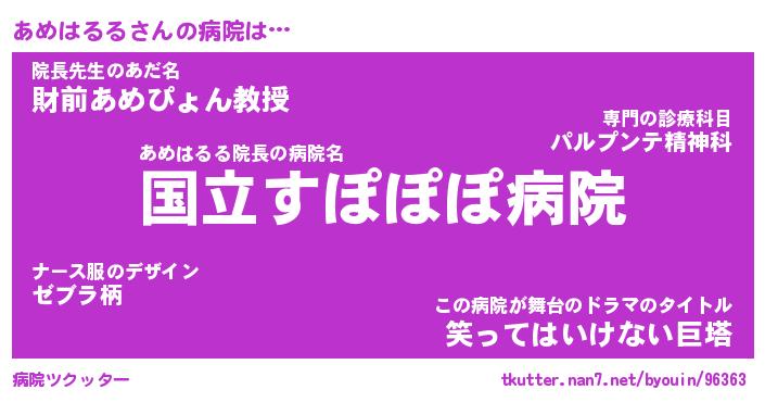 | 伝説のあだ名 | 『伝説のスナイパーあめはるる』 |