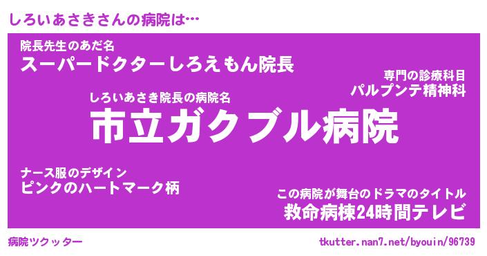 | 肩書あだ名 | 『しろいあさき店長』『しろいあさき先生』 |