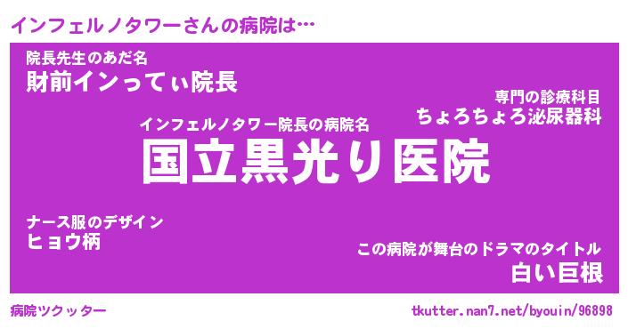 | 男性向けラノベタイトル風あだ名 | 『インフェルノタワーの憂鬱』 |