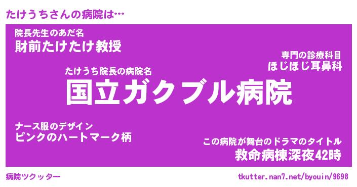 | 意味不明あだ名 | 『ペロリンたけうち』『永久保存たけうち』 |