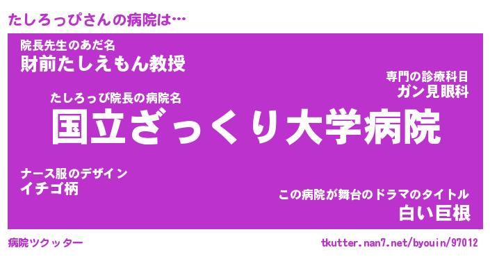 | 伝説のあだ名 | 『伝説のスナイパーたしろっぴ』 |