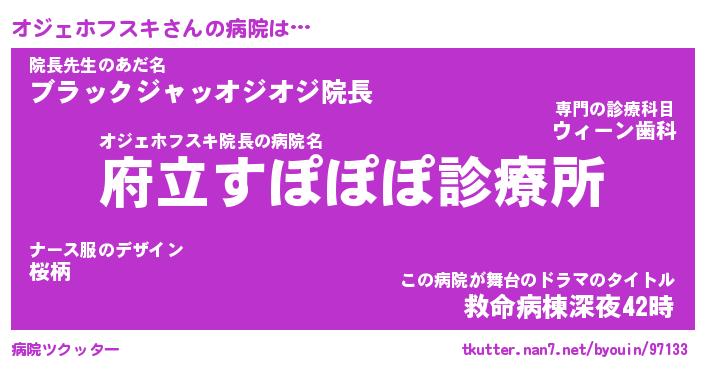 | 男性向けラノベタイトル風あだ名 | 『オジェホフスキの憂鬱』 |