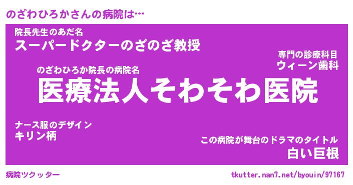 | ヒーロー風カッコイイあだ名 | 『スーパーノザワヒロカ』『黄金騎士ノザ』 |