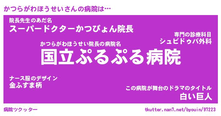 | ツイッター | かつらがわほうせいさんのツイッターID『kikurage_idle』 |