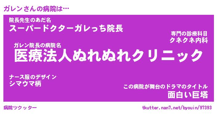 | 2回繰り返すあだ名 | 『ガレガレ』『ガガレレ』『ぬらぬら』 |