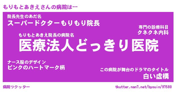 | 肩書あだ名 | 『もりもとあきえ御曹司』 |