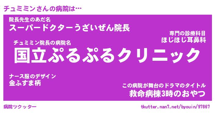 | ヒーロー風カッコイイあだ名 | 『スーパーチュミミン』『幻影騎士チュ』 |