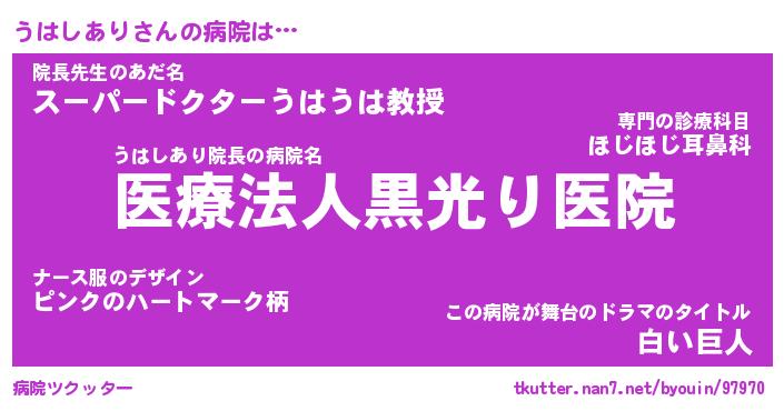 | ヒーロー風カッコイイあだ名 | 『スーパーウハシアリ』『暗黒騎士ウハ』 |