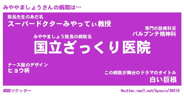 | 男性向けラノベタイトル風あだ名 | 『みややましょうの憂鬱』 |