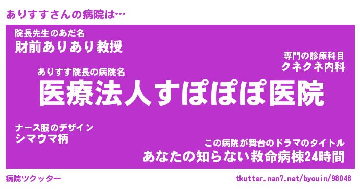 | 胡散臭い通販商品みたいなあだ名 | 『億万長者になれる霊験あらたかなお札…その名も「ありすす」』 |