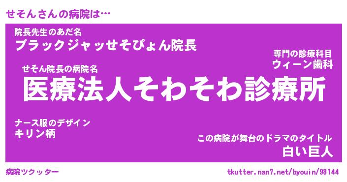 | 2回繰り返すあだ名 | 『せそせそ』『せせそそ』『ぬれぬれ』 |