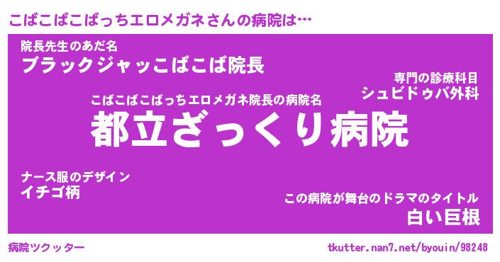 | 2回繰り返すあだ名 | 『こばこば』『ここばば』『こちこち』 |