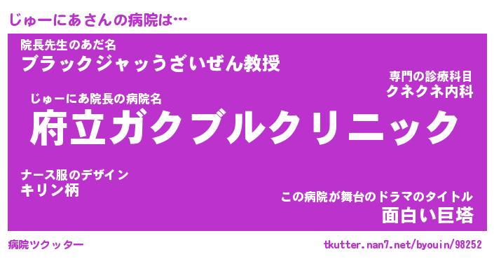 | ヘコむあだ名 | 『じゅにゅー』『なまこ酢』『じゅお』 |