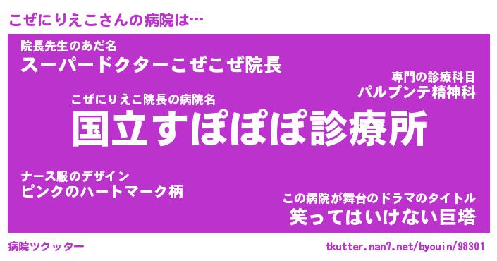| 伝説のあだ名 | 『伝説のスナイパーこぜにりえこ』 |
