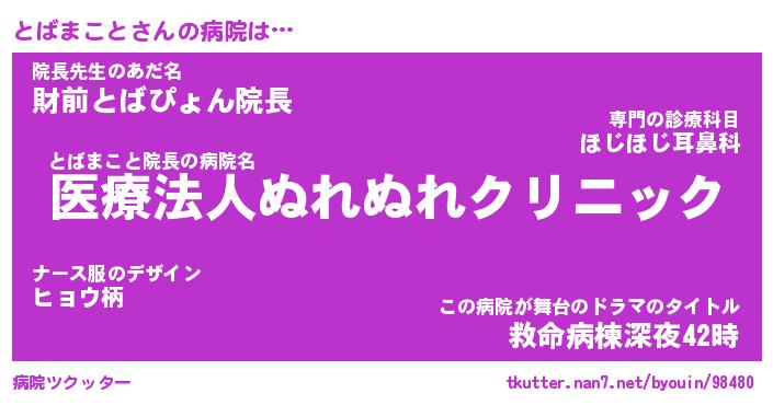 | ヘコむあだ名 | 『とばもー』『酢こんぶ』『とばっぺ』 |