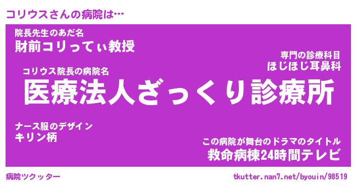 | 胡散臭い通販商品みたいなあだ名 | 『億万長者になれる霊験あらたかなお札…その名も「コリウス」』 |