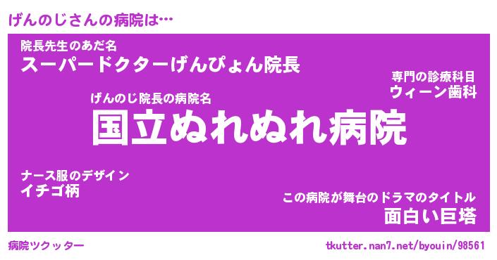 | 2回繰り返すあだ名 | 『げんげん』『げげんん』『ぬれぬれ』 |