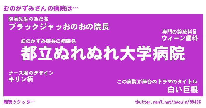 | 2回繰り返すあだ名 | 『おのおの』『おおのの』『ぬれぬれ』 |
