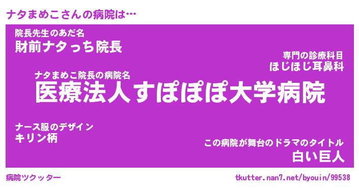 | 伝説のあだ名 | 『封印されしスナイパーナタまめこ』 |