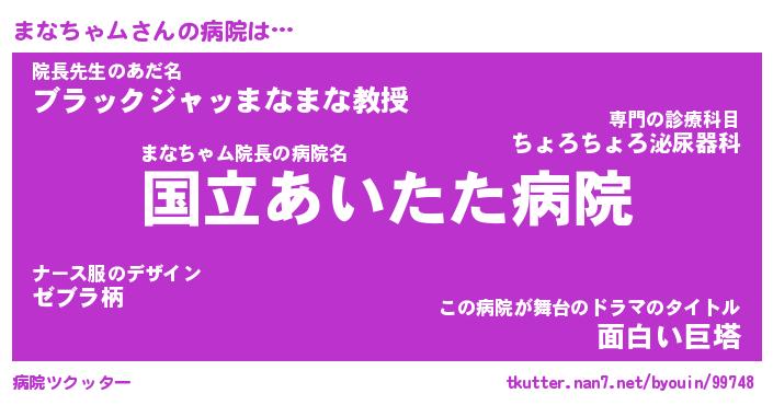 | 伝説のあだ名 | 『伝説のスナイパーまなちゃム』 |