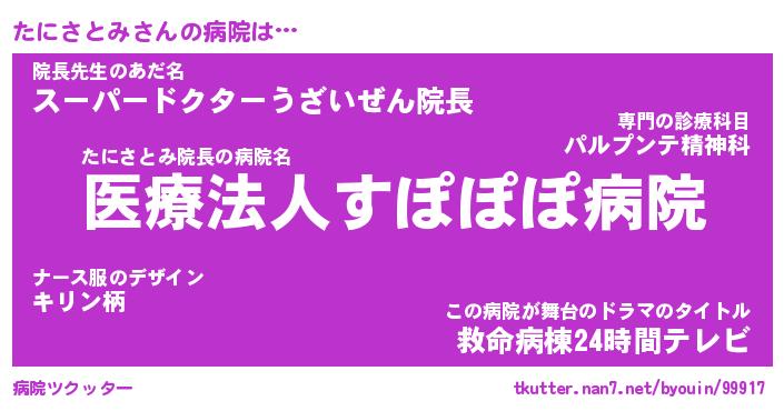| ファンタジー風あだ名 | 『タニフェル』『エターナルタニサトミー』 |