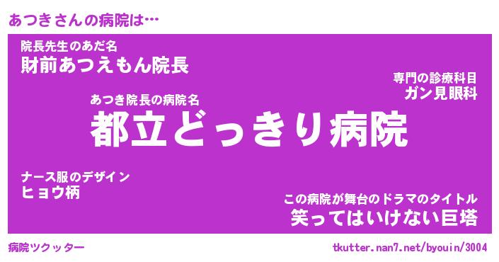 | ヒーロー風カッコイイあだ名 | 『スーパーアツキ』『ウルトラあつきマン』 |