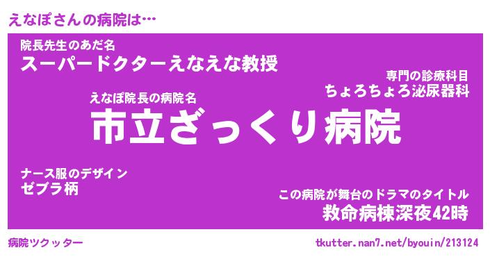 | ヒーロー風カッコイイあだ名 | 『スーパーエナポ』『ウルトラえなぽマン』 |