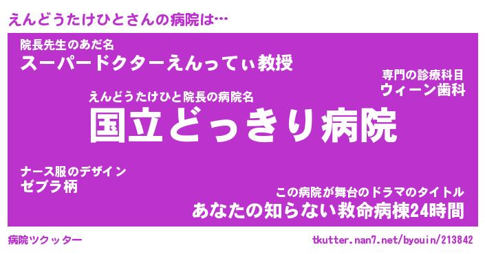 | 肩書あだ名 | 『えんどうたけひと御曹司』 |