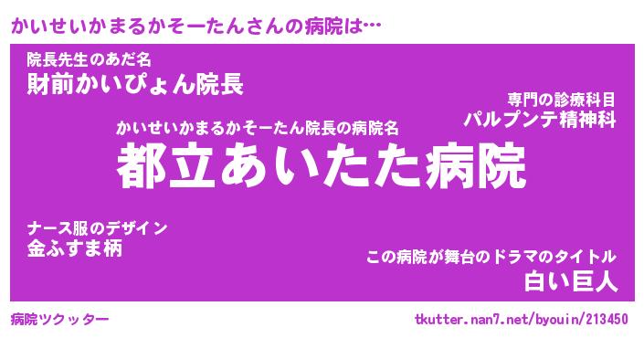 | 肩書あだ名 | 『かいせいかまるかそーたん御曹司』 |