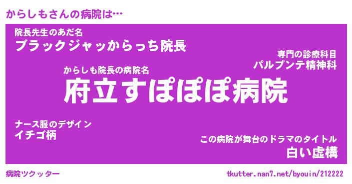 | 意味不明あだ名 | 『ペロリンからしも』『永久保存からしも』 |