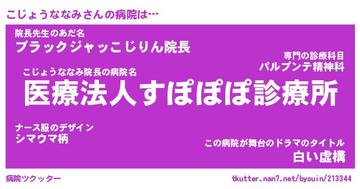| 胡散臭い通販商品みたいなあだ名 | 『モテモテ間違いなし霊験あらたかなお札…その名も「こじょうななみ」』 |