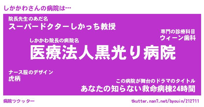| 胡散臭い通販商品みたいなあだ名 | 『億万長者になれるブレスレット…その名も「しかかわ」』 |