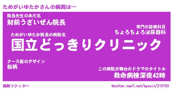 | 恥ずかしいあだ名 | 『プリティーためがいゆたか』『ためちん』 |