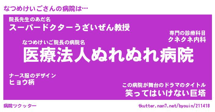 | ツイッター | なつめけいごさんのツイッターID『fukuyoka_kun』 |