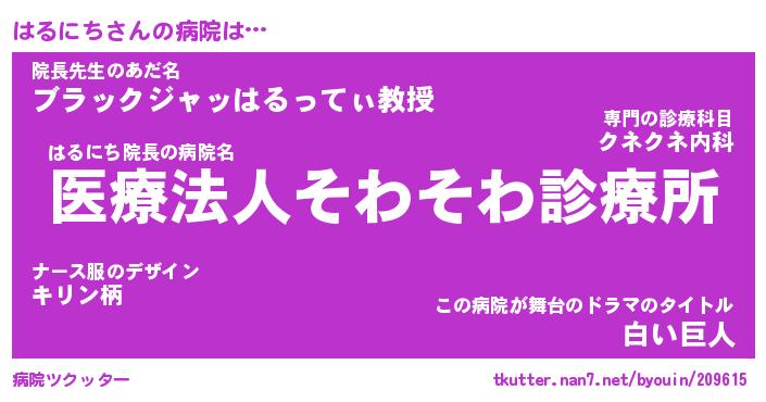 | 意味不明あだ名 | 『ペロリンはるにち』『永久保存はるにち』 |