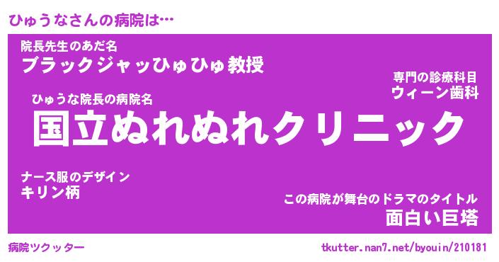 | 2回繰り返すあだ名 | 『ひゅひゅ』『ひひゅゅ』『うねうね』 |