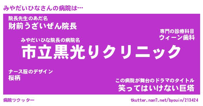 | ヒーロー風カッコイイあだ名 | 『スーパーミヤダイヒナ』『銀牙騎士ミヤ』 |