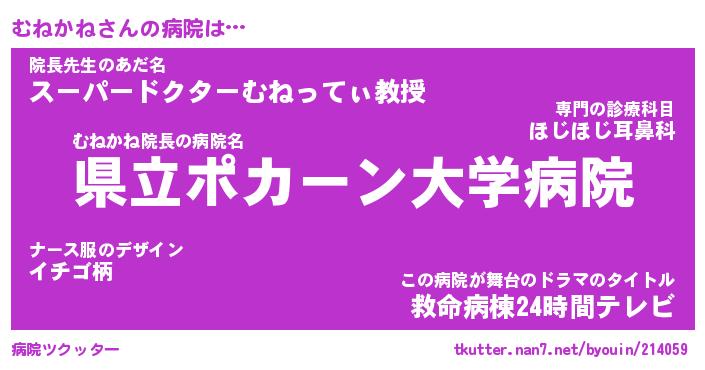 | 意味不明あだ名 | 『ペロリンむねかね』『永久保存むねかね』 |