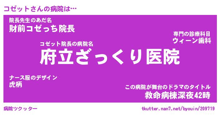 | 意味不明あだ名 | 『ペロリンコゼット』『永久保存コゼット』 |
