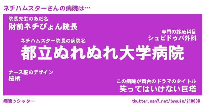 | 男性向けラノベタイトル風あだ名 | 『ネチハムスターアートオンライン』 |