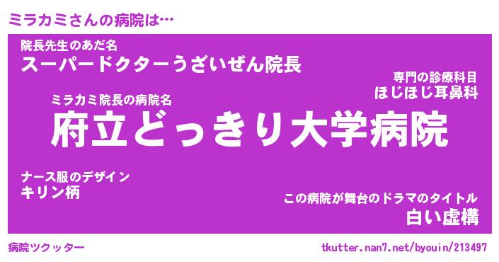 | ヒーロー風カッコイイあだ名 | 『スーパーミラカミ』『天弓騎士ミラ』 |