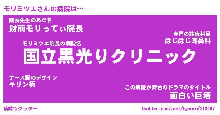 | 男性向けラノベタイトル風あだ名 | 『モリミツエの憂鬱』 |