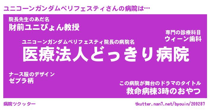 | 意味不明あだ名 | 『ペロリンユニコーンガンダムペリフェスティ』 |