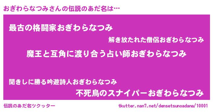 | ヒーロー風カッコイイあだ名 | 『慈愛の使者おぎわらなつみ』 |