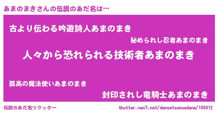 | 胡散臭い通販商品みたいなあだ名 | 『100人中100人が認めたマグネット磁石…その名も「あまのまき」』 |