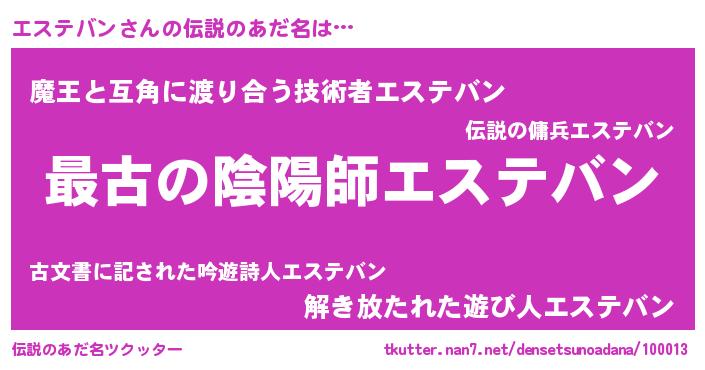 | ファンタジー風あだ名 | 『ゼエストゥ』『エターナルエステバンー』 |