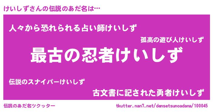 | ヘコむあだ名 | 『なまこ酢』『けいしず(笑)』 |