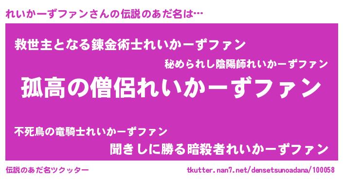| 意味不明あだ名 | 『住所不定無職れいかーずファン(50歳)』 |